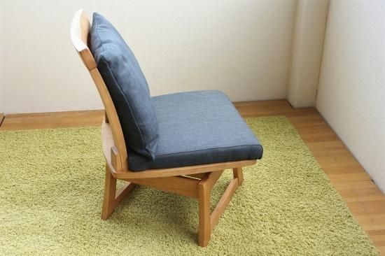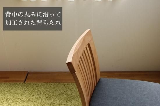 ラバーウッド無垢材の独特の風合いとブルーの座面とクッションが絶妙にマッチ。