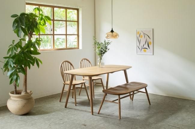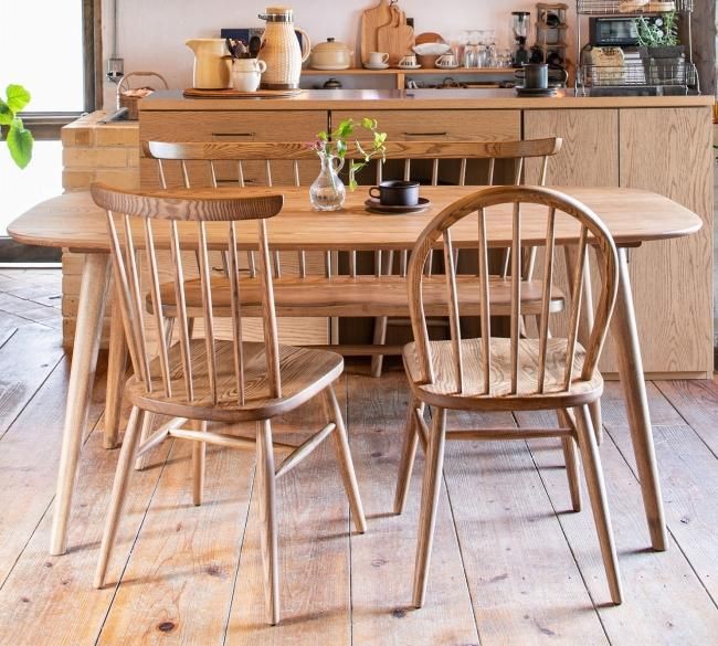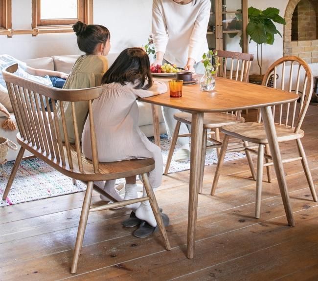 アッシュ無垢材、オイル塗装の自然な木目が味わい深いデザインのダイニングセットになります。
