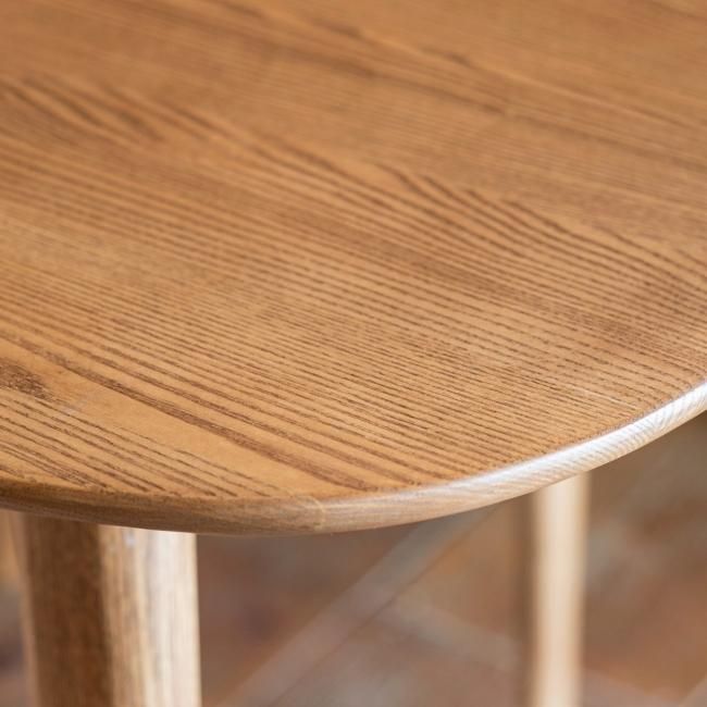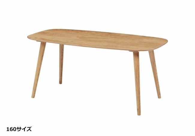 全体的に角がなく、丸みのある特徴的なシルエットは、天板の側面を面取り、丸脚の角度を斜めにすることで、やわらかさの中にもすっきりした印象のデザインとなっております。